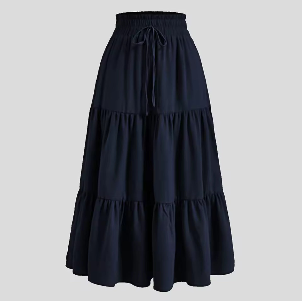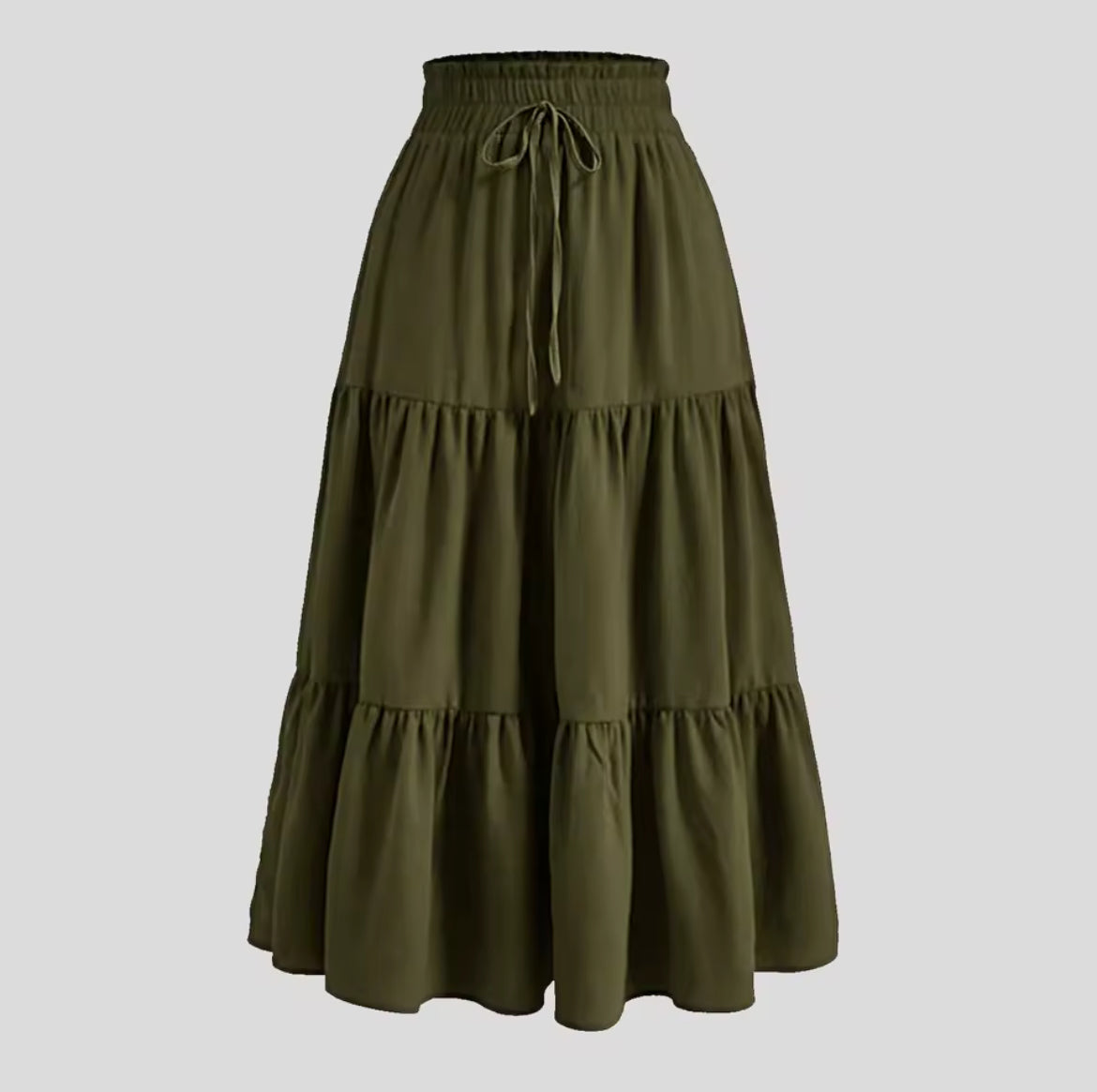 The skirt you’ll live in all season. Breezy tiers, tiny floral print, high elasticated waist, and that perfect swishy length.